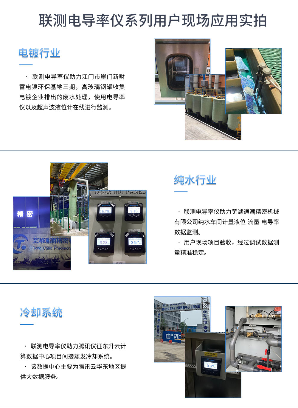應用行業 聯測SIN-EC8.0在線電導率儀廣泛應用于廢水,純凈水,環境監測,食品生產過程等。