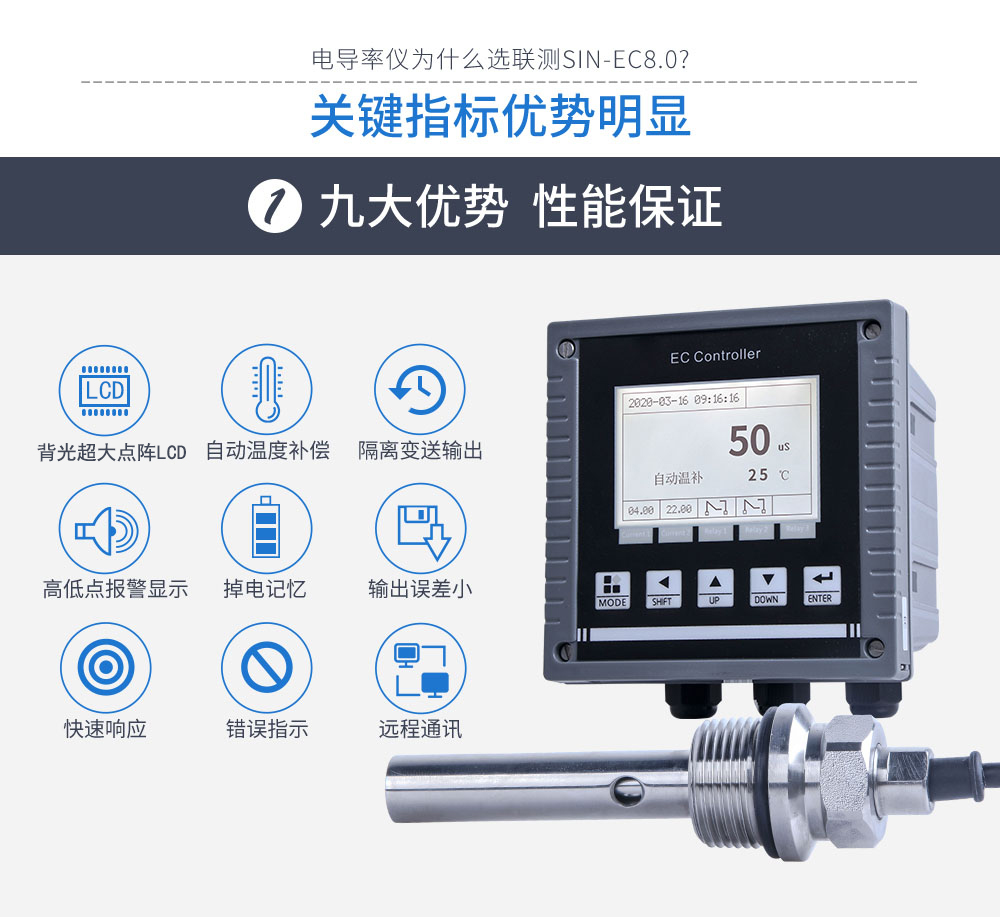 聯測儀表SIN-EC8.0在線電導率儀RO過程、水處理、CIP清洗、海水淡化