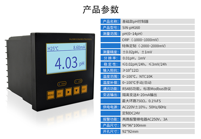 SIN-pH160是工業(yè)pH計,是工業(yè)酸度計的智能化升級產(chǎn)品,可對污水pH值進(jìn)行連續(xù)測量和控制。
