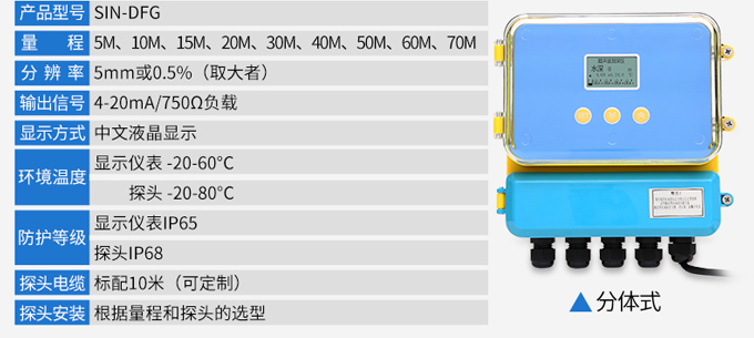 聯測SIN-DP超聲波液位/物位計采用超聲波脈沖原理進行非接觸式的測量,是一種非接觸式、高可靠性、高性價比、易安裝維護的物位測量儀器。它不必接觸介質就能滿足大部分物位測量要求,集液位水位測距顯示變送等功能于一體,被測介質幾乎不受限制,可廣泛應用于各種液體和固體物料高度的測量。