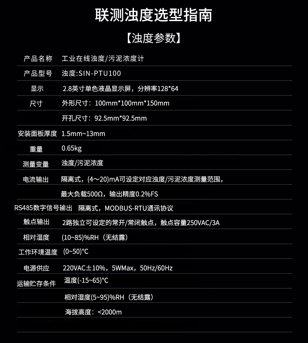 應用行業(yè) 聯(lián)測SIN-PTU100在線濁度分析儀內置微處理器,適用于于污水廠、自來水廠、水站、地表水、工業(yè)等領域濁度監(jiān)測。